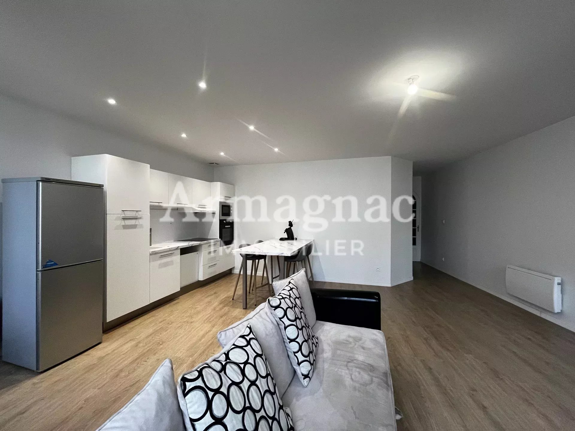 L'appartement comprend une cuisine semi-équipée ouverte sur un séjour lumineux, deux chambres, une salle d'eau et un wc indépendant.